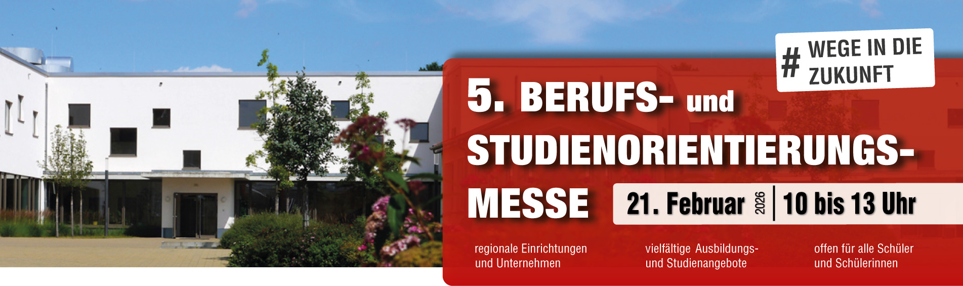 Schülerinnen, Schüler & Eltern erwartet ein spannender Vormittag mit regionalen Unternehmen, Institutionen und Hochschulen. Informiert euch über Ausbildungs- und Studienmöglichkeiten, knüpft erste Kontakte und entdeckt neue Perspektiven für die Zeit nach der Schule.