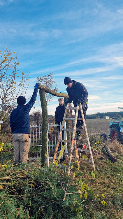 Besonders wichtig war auch die Einrichtung einer Wassersperre, um das Gelände bei Regen vor Überschwemmungen zu schützen und die Nachhaltigkeit des Projekts zu gewährleisten. Hier konnten die Auszubildenden ihre Fähigkeiten im Bereich der Landschaftsgestaltung und Naturpflege unter Beweis stellen.